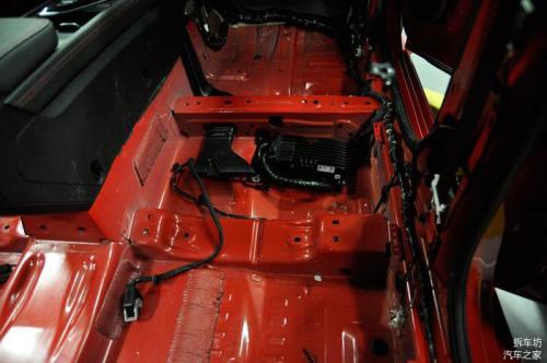 另外就是车身底板本身冲压出的凹槽,也是为了提高车身底板的刚度和抗扭度,同时车身底板还黏贴了部分止震贴。