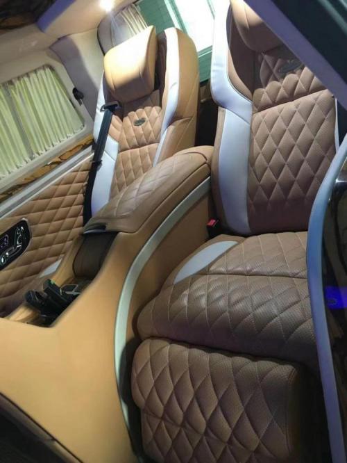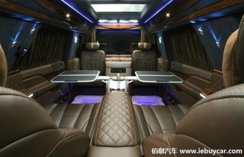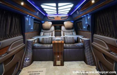 车内还配备中央电视墙吧台下方储物格,如果你喜欢品酒,可以摆放一些收藏的好酒,高级感十足的大面积木饰使整个后舱是你品味的提升。车内配置也一应俱全,中央吧台下方是一个电动升降电脑桌板,可供车主临时办公,吃饭,喝茶以及当四人坐满时,打牌和聊天等作用。其他配置有40寸的电视机、蓝光DVD、BOSE音响、对讲机、柚木地板、咖啡机、游艇钟表、电动窗帘等。当然,也可以根据你的爱好来布置你的后舱,只要你不差钱!