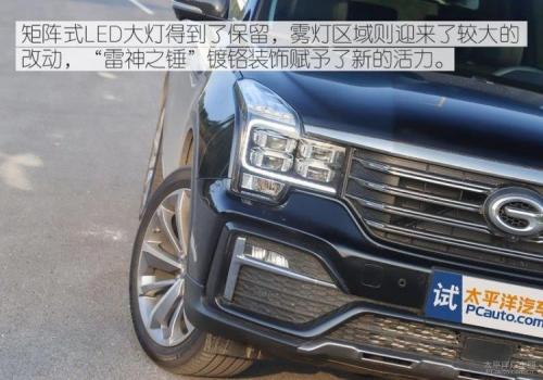 新传祺GS8延续了旧款车型的设计及轮廓,外观方面并没有很大的改动,进在装饰件上有所变化,最大的不同点莫过于前雾灯的“雷神之锤”镀铬装饰了。