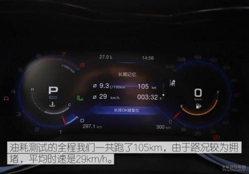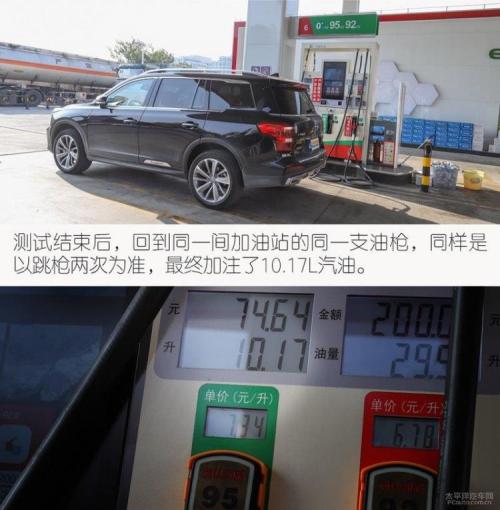 对于这台庞然大物,相比油耗也是各位比较关心的,为了测试新车的在城市驾驶的油耗,我们拟定了日常通勤的路线——快速路城市路,把平均时速控制在30km/h左右。在广州,环城快速上行驶的平均时速在40-50km/h,而在城市道路上,平均时速20km/h不到,如此综合下来,平均时速为29km/h,加注了10.17L燃油,换算其百公里油耗为9.68L/100km。