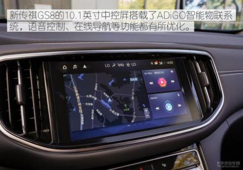 除了发动机,新传祺GS8的中控系统也值得一提,它搭载了ADiGO智能物联系统,语音识别的准确率和相应度都有所提升,在线导航支持高德和腾讯,百度CarLife和APP远程控制等都配备到位。空调系统可以实时监测车内的PM2.5含量,并持续净化空气,中控屏上也能控制后排空调。
