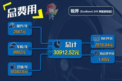 作为汉兰达的主要对手,福特锐界的整体表现也不错。其全年养车总花销在30912.52元左右,平均每月花销为2576.04元,每公里平均花销为1.43元。取得这个成绩的主要原因是其2.0T发动机可以加注92号汽油,因此,在燃油经济性表现一般的情况下,依旧将总成本保持在可控范围。