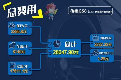 指导价18.28万元的传祺GS8 320T两驱豪华智联版在售价上是此次调研四款车中售价最便宜的,再加上1~1.5万元的终端优惠,落地基本在20万以内。但是,作为一款国产车型,GS8在后期维护费用上并没体现出更多优势。中规中矩的油耗表现和较短的保养周期是GS8后期费用较贵的主要原因。其平均每月维护费用为2337.33元,每公里平均费用为1.29元。所以,喜欢GS8的朋友要对其养车成本有所了解,以免以物累形。