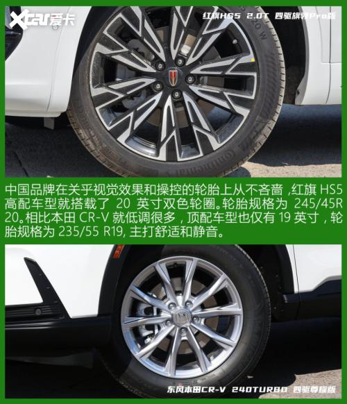但目前红旗HS5市场价格有2.5万的优惠力度,而CR-V更是接近了4万元,因此我们此次对比的各自顶配车型,虽然官方指导价只相差100元,但CR-V的终端售价则反而低了1.5万余元。