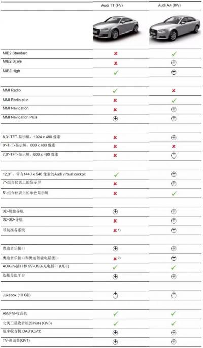 如果用户想在其车上使用高端产品,那么可以选装MIB2 High。该装置首次是用在Audi TT(车型FV)上了。