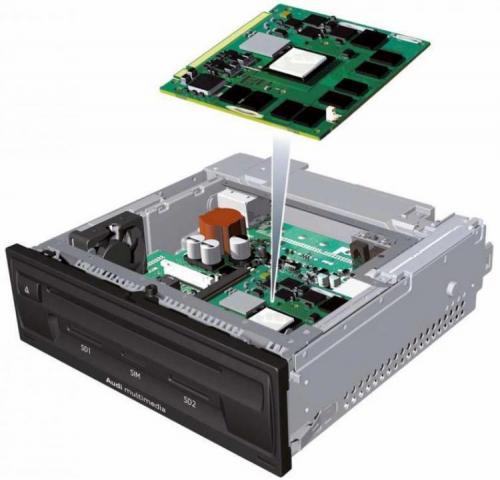 如果用户在购买新车时不能决定是否需要导航装置,那么可以订购带有连接分组平台的MMI Radio plus (以Audi A4 (车型8W)为例)。这样,从技术上来讲,这车上的MIB2 Scale就算有了导航准备系统的硬件部分了。
