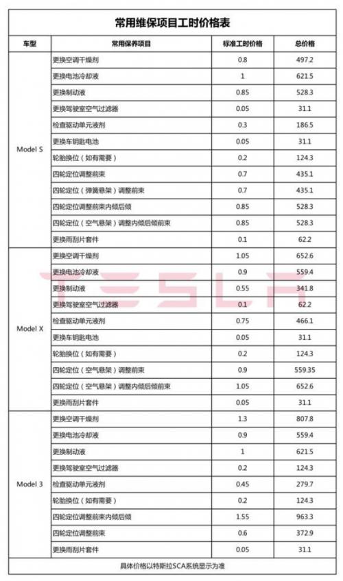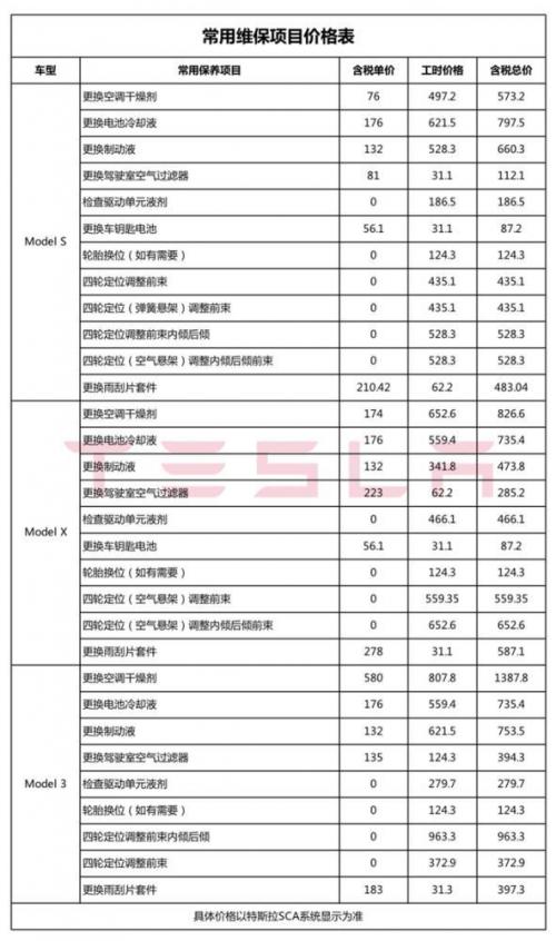 这两份价目表可以在全国特斯拉的门店见到,已经贴到了门店的墙上,不同的车型维保价格和工时费有所差别,不过价格大喵看后觉得还是挺良心的,而且做到全国统一、公开透明,这一点就值得其他品牌商好好学学。