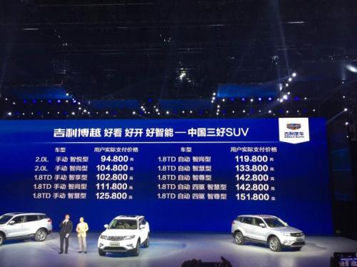3月26日,吉利全新SUV博越正式上市,新车搭载1.8L涡轮增压发动机和2.0L自然吸气发动机,共推出10款车型,全系均享受购置税厂家直补4000/6000元,补贴后官方指导价9.48-15.18万元。博越是吉利汽车耗时三年打造的紧凑型SUV,新车基于吉利全新NL平台打造,也是“博”字辈的第二款车型。