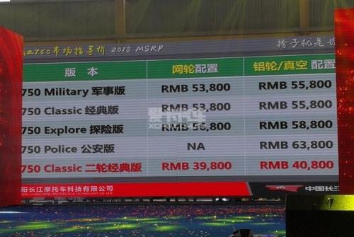 | 750Classic二轮经典版 | 3.98万元 | 4.08万元 |