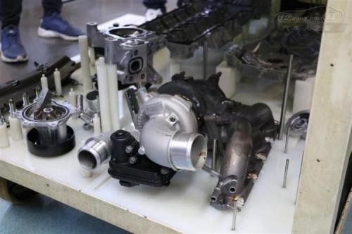 再者,390T发动机的涡轮增压器采用了双涡管设计,一四缸一个管,二三缸一个管,排气之间相互不会产生干涉,让发动机同时兼顾低速扭矩和高速功率。而电控废气阀替代了此前的真空废气阀,一方面是在冷启动状况下能够迅速加热三元催化器,降低排放;另一方面是在驾驶者突然加速时关闭阀门,让所有废气都吹向涡轮,提高发动机响应速度。