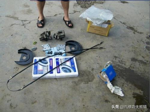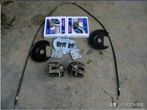 刹车盘、桥码、桥码螺丝、分泵总成、刹车挡板、手刹拉线、分泵支架螺丝、手刹拉线卡扣、刹车片