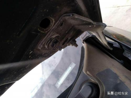机舱部分,首先还是检车机盖的固定螺丝,发现没有拧动拆卸痕迹,减震的固定螺丝也没有拆卸痕迹,机盖锁的螺丝也是一样,没有任何拧动痕迹。再加上发动机舱周围的细节检测,可以排除车子出过事故的嫌疑。