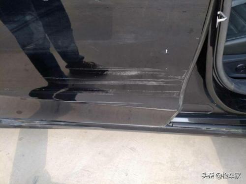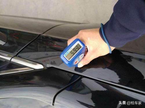 首先还是绕车辆一圈,用肉眼观察,发现车身上的灰尘还是很多的,这点对我们检测外观有一定的影响,但是也挡不住猩猩我的火眼金睛。这不,在右后车门就找到了一条划痕,而且划痕很明显,不过没有伤到底漆通过抛光是可以解决的。如果抛光建议找个老师傅做最好,不然把底漆给你抛出来那就尴尬了。下面拿出专业设备检测漆面具体情况。