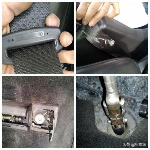 安全带生产日期和车辆出厂日期对得上;就是安全带有上了一些污物,后期可以处理一下;主驾驶座椅下部滑轨、螺丝、电机、线束未见异常;方向盘下部及方向机管柱未见异常,只有一点正常的浮锈,基本可以排除车辆的水泡嫌疑。