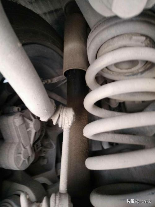 接着我检查了各减震器和附件,发现只有左后减震存在渗油,并且看这个样子渗油的时间已经很久了,这就需要后期直接进行更换了,好在这个不是太贵。那基本上静态检测到这里也差不多结束了,整体车况很不错,最后来进行路试吧。出于安全考虑,路试期间就不拍照了,老司机飙车的画面就只能请大家自行脑补。