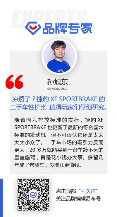 这是一台门槛很高的车,想拥有它你需要做几点准备,接受较高的维修保养价格,接受让人心跳的二手车保值率,还有对捷豹品牌和欧系旅行车偏执的喜爱,同时具备这几点的消费者,肯定是达到玩家甚至发烧友级别的车迷了,想清楚以上这些,捷豹XF SPORTBRAKE就可以娶回家了,你负责赚钱养它,它负责貌美如花。