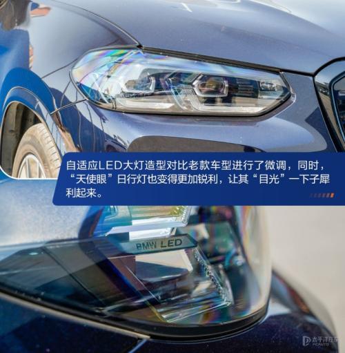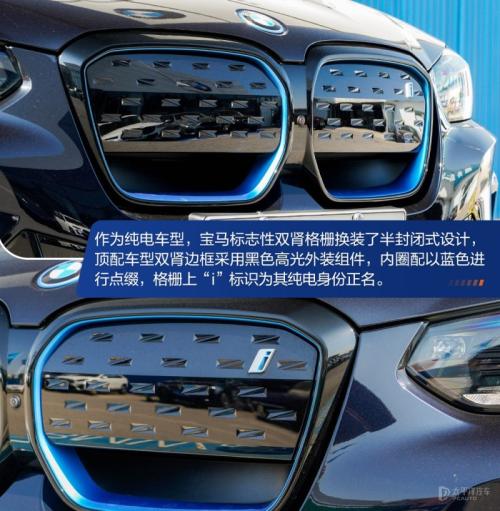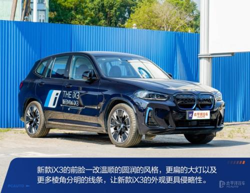 适逢宝马X3改款,宝马iX3也吃上了改款的红利,与宝马X3一样,在前后大灯造型、前格栅、保险杠等明显的地方,采用了更加凶悍和凌厉的设计,设计师仅仅动了几刀,仿佛释放了它的颜值潜能。