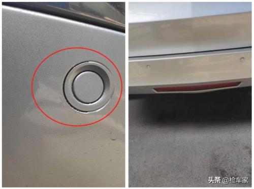 然后我又来看了看后部,发现后杠喷漆,并且有明显瑕疵。