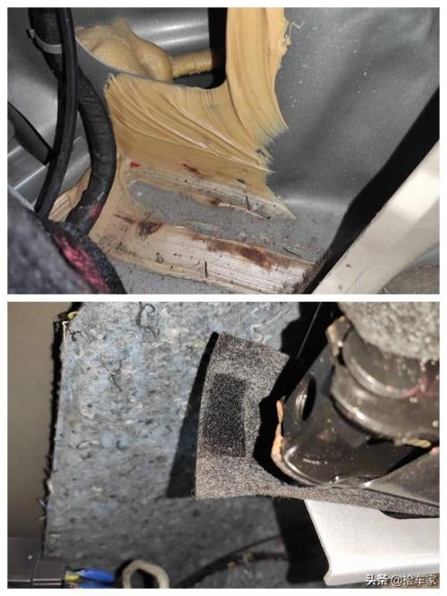 接着我又发现此车的座椅重新喷漆,漆渍还存在残留,而且微微一看便发现方向盘翻新,这说明了车辆内饰存在翻新,根据磨损来看这个调表已经很明显,待会查查维保记录看看能不能实锤。接着看看有没有泡水嫌弃,毕竟这么便宜,没有一定大问题我都不信!