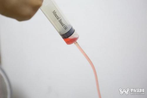 将换好新油的注油筒连接在手柄油壶孔,记得连接之前先把油管内的空气排干净,尽量不要像上图油管内有气泡