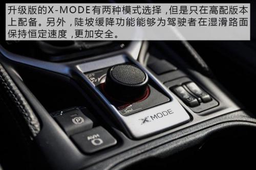 新森林人全系标配了斯巴鲁的全时四驱系统,X-MODE能够在此基础之上强化车辆的性能表现,此外,在高配版本上,能够实现两种模式的切换(SNOW/DIRT、DEEP SNOW/MUD)。