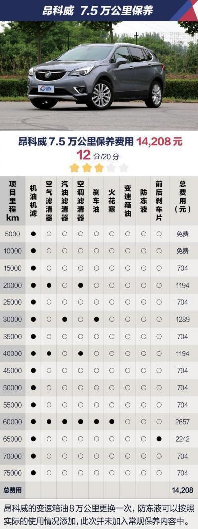 由于昂科威的保养周期较短,相对来说保养的频率就会增加,加上别克品牌的售后方面并不算实惠,最终其在7.5万公里时的养护费用达到了14208元,如果厂家能够将保养周期缩短,那保养价格方面肯定会亲民很多。