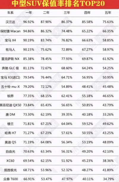 通过查阅中国汽车流通协会在2020年发布的SUV保值率排行榜。不看不知道一看吓一跳,在数据面前真的是感同身受。