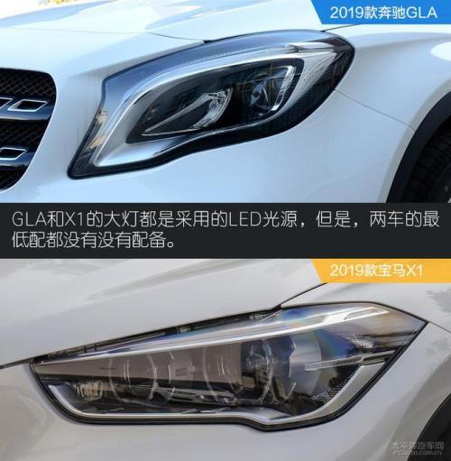 GLA的大灯依旧采用的是LED光源,但是最低配没有配备,同时灯组线条流畅类似双眼皮的设计很是吸引人;与GLA一样宝马X1也是采用的LED日间行车灯,但是低配车型没有覆盖,大灯内部的双独立圆环大天使眼,依旧闪亮夺目。