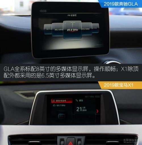 GLA的内饰采用了褐色运动设计风格,看上去简约时尚,X1中控采用了整块木纹饰板,增添豪华气氛。