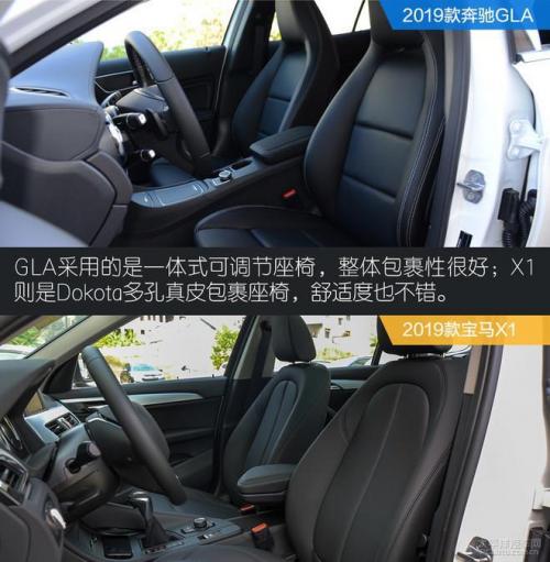 GLA采用的是一体式可调节座椅,整体包裹性很好,后座还采用了一体式的头枕,前排全系标配4向腰部支撑;X1采用了Dokota多孔真皮包裹座椅,前排座椅可手动延长的腿部支撑,同时后排座椅也可进行前后调节,乘坐舒适度大幅度提升。