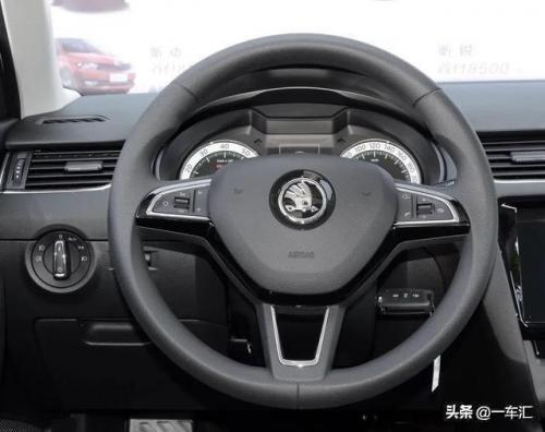 三辐式多功能方向盘为斯柯达家族样式,表面辐条变得更细长,环绕的黑色烤漆装饰与镀铬饰条,提升了一丝精致感;两侧按键和拨杆负责行车电脑、蓝牙语音、多媒体调节等功能,定速巡航控制按键集成在后方灯光拨杆上,握柄处为塑料材质,方向盘支持手动四向调节。仪表盘为两侧机械指针表盘,搭配中间单色行车电脑显示屏,表盘底部的银色和绿色装饰,属于斯柯达的经典配色,中间屏幕能够显示较为丰富的行车信息,车型配备了疲劳驾驶提示。