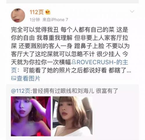 于是112页自己下场挂了这位朋友,她称每个人审美不一样没关系,你觉得不好看还非要到自己地盘撒野就别怪她不客气了。