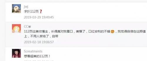 112页是靠口红试色红起来的,因为试色种类多且详细,各个牌子都有,关键是人长得好看,所以在微博有80w粉丝。