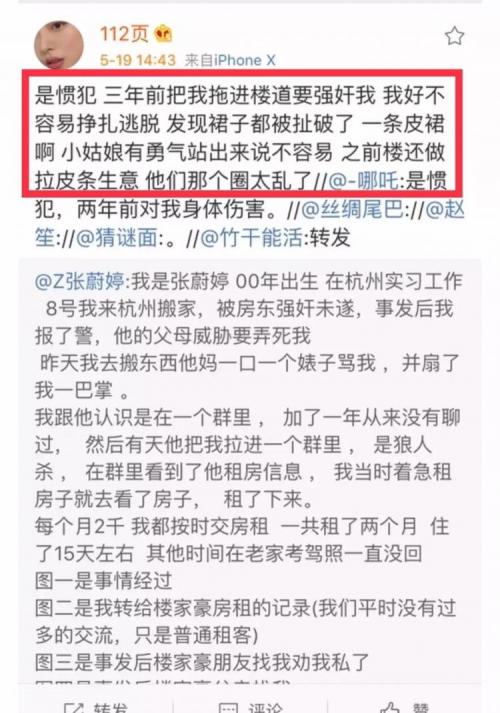 一位女生自曝自己差点被房东性侵,结果112页也讲述自己差点被QJ的事情,能告诉我们是哪个房东吗?这种人渣不曝光干啥!