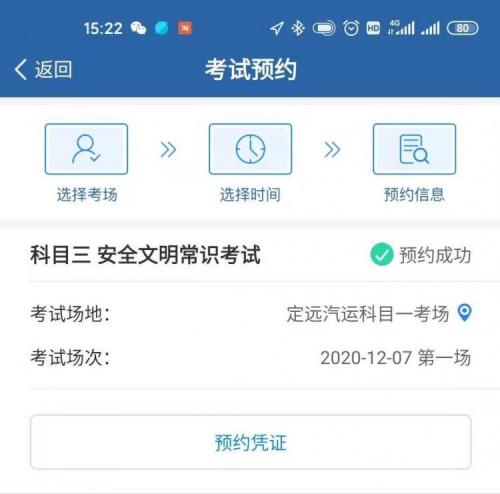 我当时预约的是30号考试,从科目二到科目三时间是20天,科目三考完之后就预约了科目四