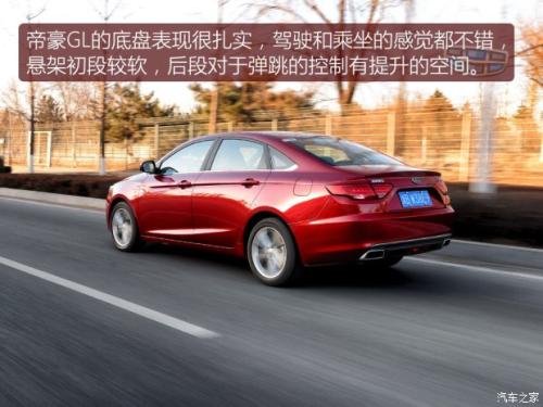 底盘调校对于一款车来讲也很重要,帝豪GL的底盘整体感很强,而且调校上也可以感觉到会偏向舒适性多一些,毕竟是主要面对家用市场,舒适还是要放到第一位的。缺点?肯定也是有的,比如通过一些减速带的时候,前悬架会有多余的弹跳。