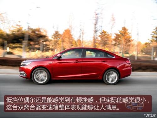 对于帝豪GL的动力部分,相信大家最关心的还是变速箱,的确,目前有很多双离合器变速箱的表现真的并不是让人很满意,这里也包括很多合资品牌。而帝豪GL的双离合器变速箱在整体的换挡表现上还是挺不错的,1挡起步的时候,会有很小的抖动,这个需要比较仔细的体会,如果不是特别低速的行驶,基本可以忽略。