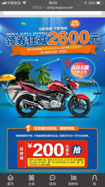 我是豪爵官网上团购的,原车价26680元,活动开始的前三天可以领200优惠券,团购活动再优惠2400,一共可以省去2600元,裸车价就是24080元。刷的信用卡,额外收了100多手续费