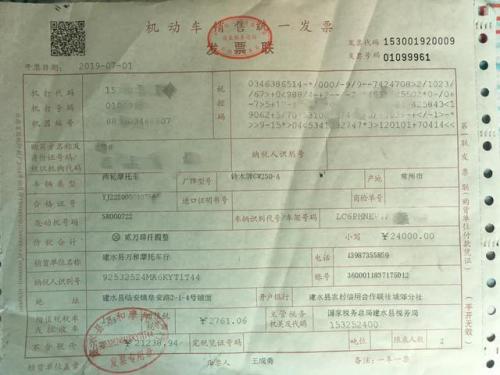 一,购置税(新政策规定摩托车排量150cc及以下的免征购置税,gw250排量是250cc需要上购置税)我的发票上的车价是24000元,提车处的车行老板帮我少开了80元,购置税不知道是怎么计算的,购置税交掉2123.89元。