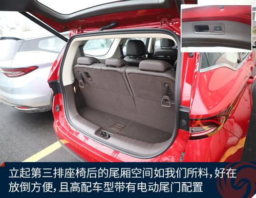 其中第三排的头部空间给了我比较大的惊喜,较大的凹陷让我们可以在第三排相对舒服的切换更多坐姿缓解疲劳——毕竟,坐车坐累很多时候是因为保持同一个坐姿。
