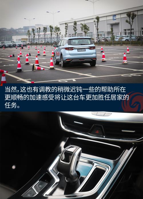 相对平顺的加速感受是吉利的调教功底所在,有了轻混系统的加入,更顺畅、输出更均衡的起步将会让这台车无比居家,而7速双离合变速器此时就被管的服服帖帖了——丝毫觉不出来它的蠢蠢欲动。