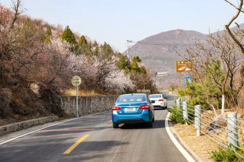 别看妙峰山海拔不高,盘山公路却是狭窄蜿蜒,死弯也比较多,众多骑行爱好者和机车手们喜欢到妙峰山挥洒汗水和享受驾控的刺激。对于电动车而言,爬山路和高速路一样处于高负荷工况,一路上坡对电量消耗极大,从山脚到山顶15km左右,消耗约20%的电量;轩逸·纯电在山路中的表现还是不错的,虽然不能与运动车型相比,但在弯道中给人很强的信心。