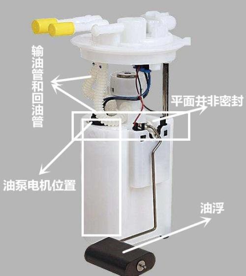 此图为一款非常普通的汽油泵,可以看出油浮的位置就是我们在仪表盘里看到的汽油量,当我们将油加至一半时,油浮的位置早已超过了油泵一半的高度,这时候汽油泵的并不是完全密封起来的,所以就会有一些汽油进入到油泵内部。两个塑料管子分别接到了油泵电机的两端(一般成为输油管和回油管),当我们熄火停车时,油泵会将一定量的汽油保存在油管内,防止突然启动导致油泵压力不足。还有我们在正常行驶的时候会不断地提速刹车,这时候汽油也会随着车辆的变化在油箱内不停地翻滚。以上三点都会给油泵电机进行散热,所以无需担心汽油泵会因为散热不足的问题导致损坏。