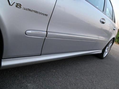 车身的侧面拥有一条非常不起眼的侧裙,然而这并非E55 AMG的专属配置,普通版的E级同样有类似的配置,这让E55 AMG的车主们多少会有些心塞。