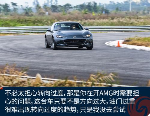 205宽度的窄胎实际上非常适合这台MX-5——它不需要牢牢的抓地。当AMG不得不用更宽的轮胎去平衡极大扭矩、V8引擎车头重量所带来的不安分时,MX-5则让你觉得服服帖帖也有一种额外的愉悦——就像是一个身着和服的日本女人。