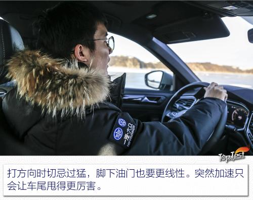 冰面附着力较低,即使配备了雪地钉胎,不期而至的滑动仍然时不时地到来。所以操控成为这个项目的重点。冰雪路面上,驾驶者的意识和操作一定要快于车辆的反应。当你发现车辆失控再去救的时候,就已经来不及了。所以一定要在车轮突破抓地力前,及时修正方向和控制油门,才能让车辆重回正轨。
