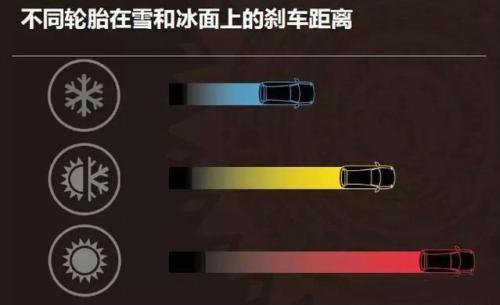 除此之外,小编也是针对不同轮胎在雪和冰面上的刹车距离也做了相关的调查测试,根据图片上所显示的信息,我们可以清楚地了解到。当面对雪和冰面儿的时候,冬季轮胎的制动距离相对于四季轮胎和夏季轮胎要短很多。