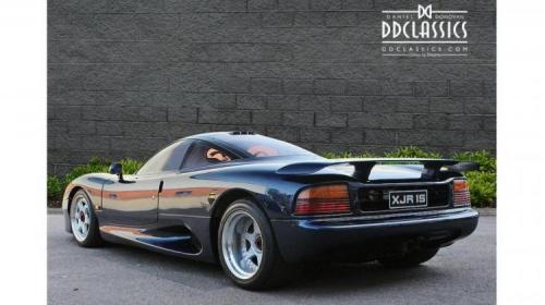 这款跑车的外观设计灵感来源于捷豹勒芒耐力赛XJR-9,搭载一台6.0L V12自然吸气发动机,最大功率450马力,最大扭矩569牛米,虽然动力参数用今天的眼光看不算抢眼,但XJR-15非常轻,车身使用碳纤维以及凯夫拉纤维混合而成,车身重量只有1062kg,V12加上轻量化车身,0-96公里每小时加速只需3.9秒,极速可达307公里每小时。