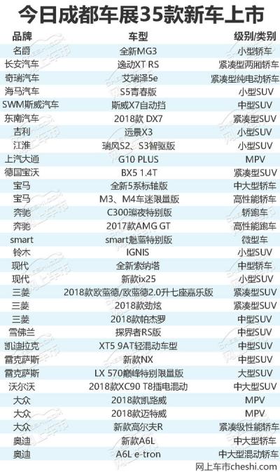 第二十届成都国际车展今日正式开幕,本届成都车展依旧是一场新车、新技术的盛宴。编辑梳理了各大品牌规划发现,35款新车今日将密集上市。其中超半数为SUV,还有9款七座车型,将成为本次车展的一大亮点,下面就请各位跟随小编往下看吧!