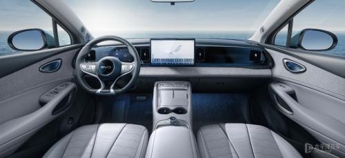 大灯部分也是亮点,前后都是贯穿式的灯组,轮廓显得很流畅,如海洋环流将车子包裹。还值得注意的是,尾灯内部灯腔的设计类似于翻涌的海浪。至于功能方面,前大灯采用远/近光双透镜模组,近光灯照射角度前向80°,带来更宽阔清晰的视野,夜间行驶更安全。